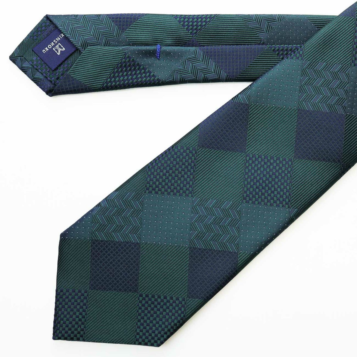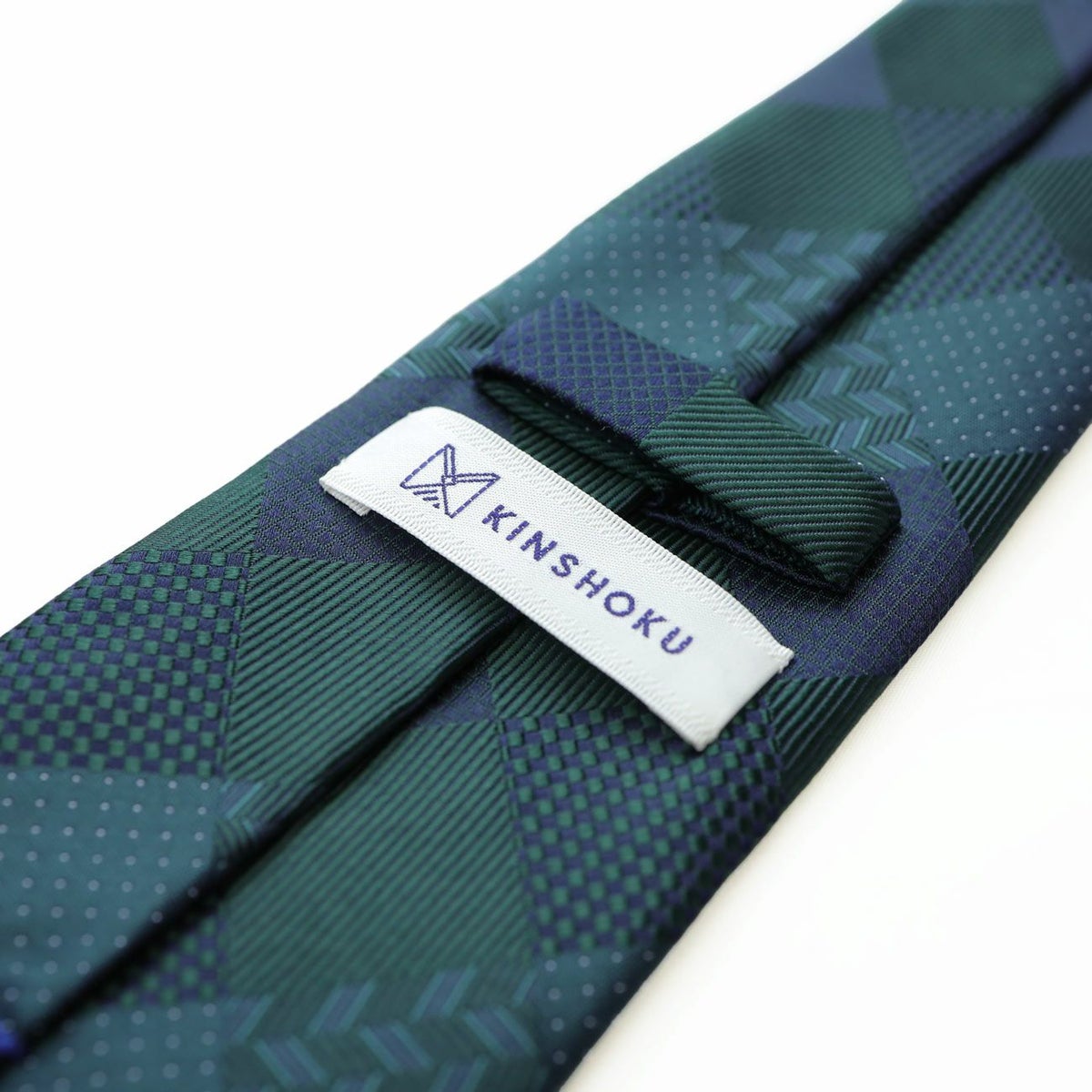 KINSHOKUネクタイ ソリッドパッチワーク・グリーン