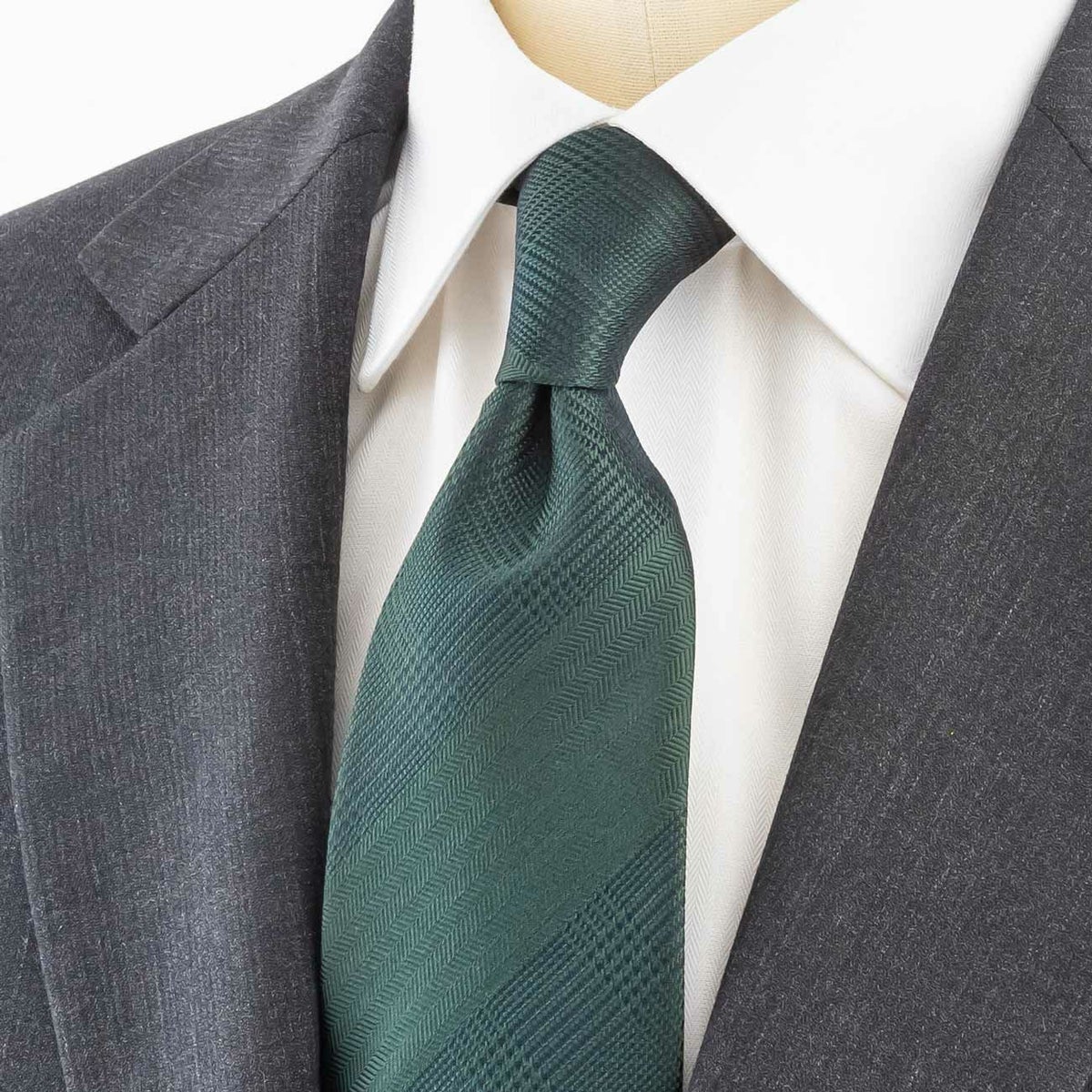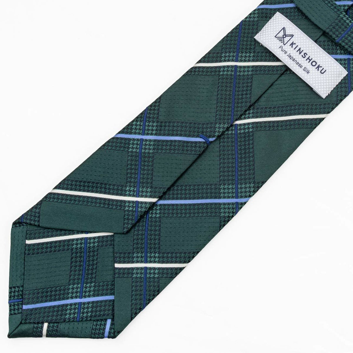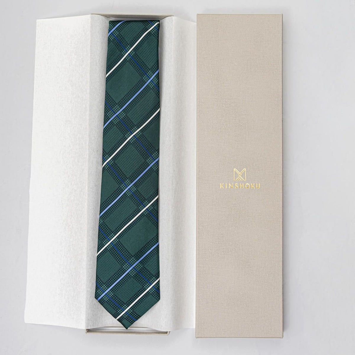 KINSHOKUネクタイ ソリッドグレンチェックストライプ・グリーン