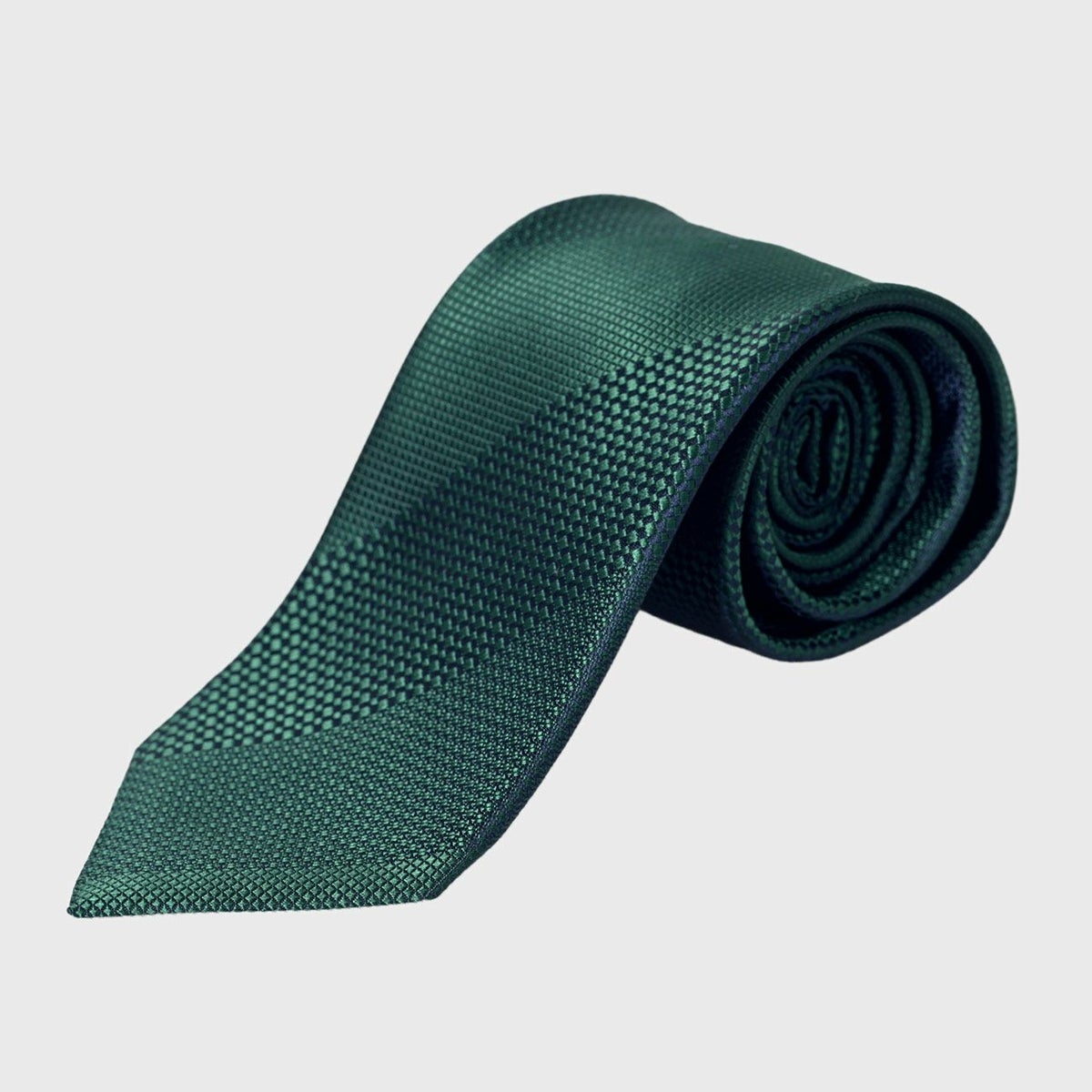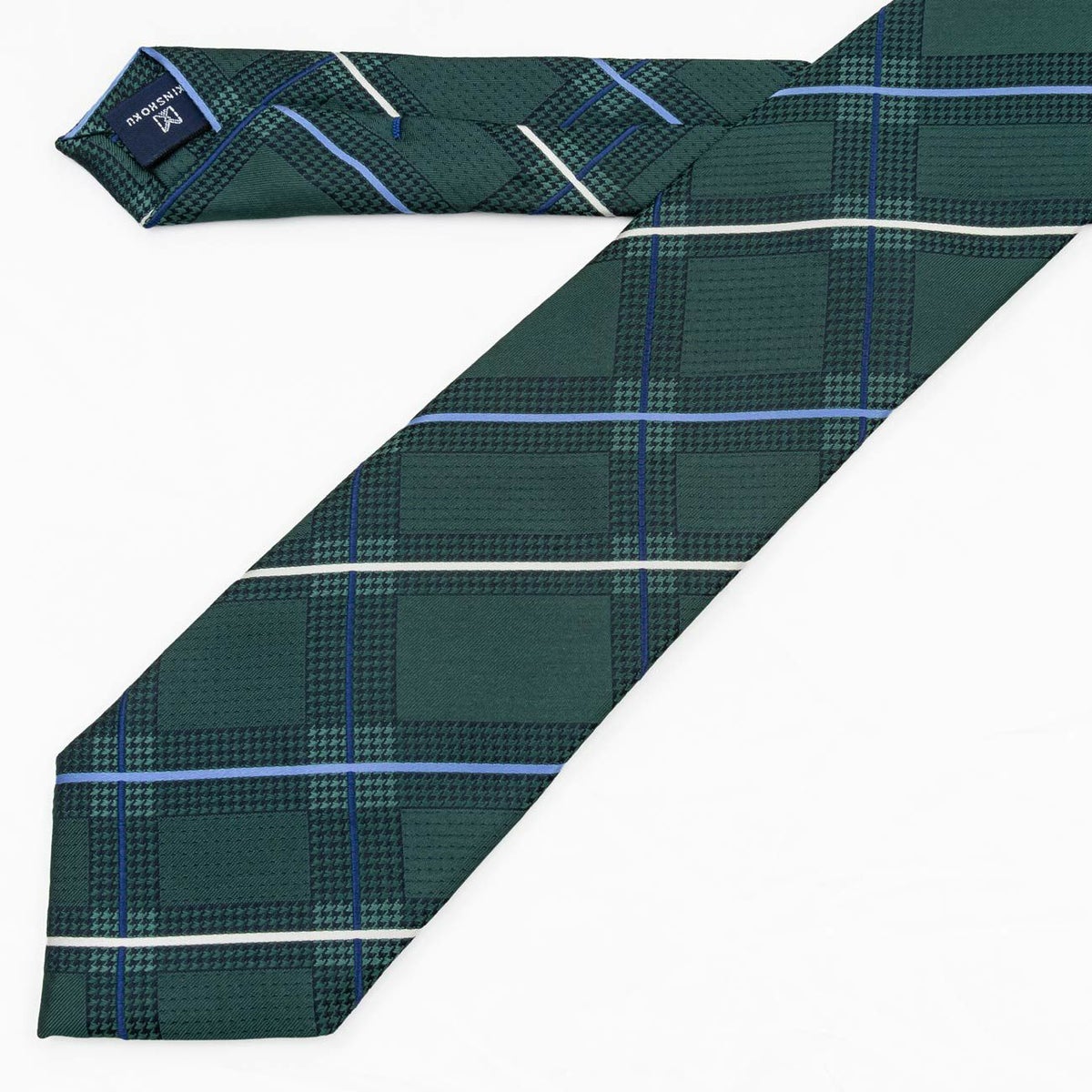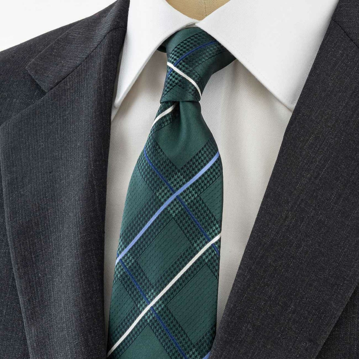KINSHOKUネクタイ ソリッドグレンチェックストライプ・グリーン