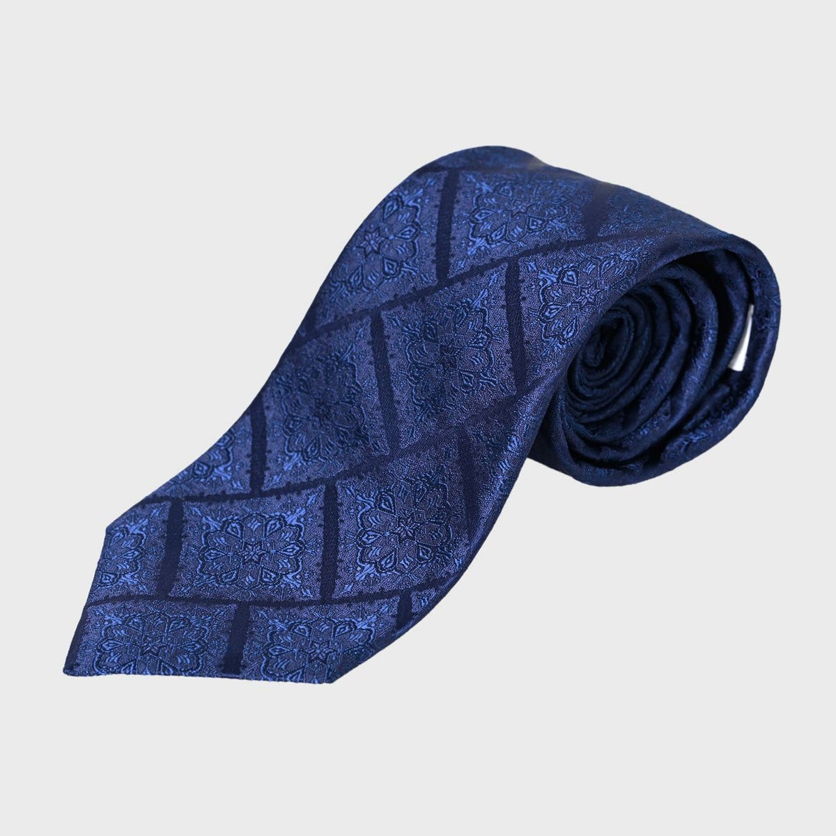 KINSHOKUネクタイ ペイズリーストライプ・ネイビー/ブルー