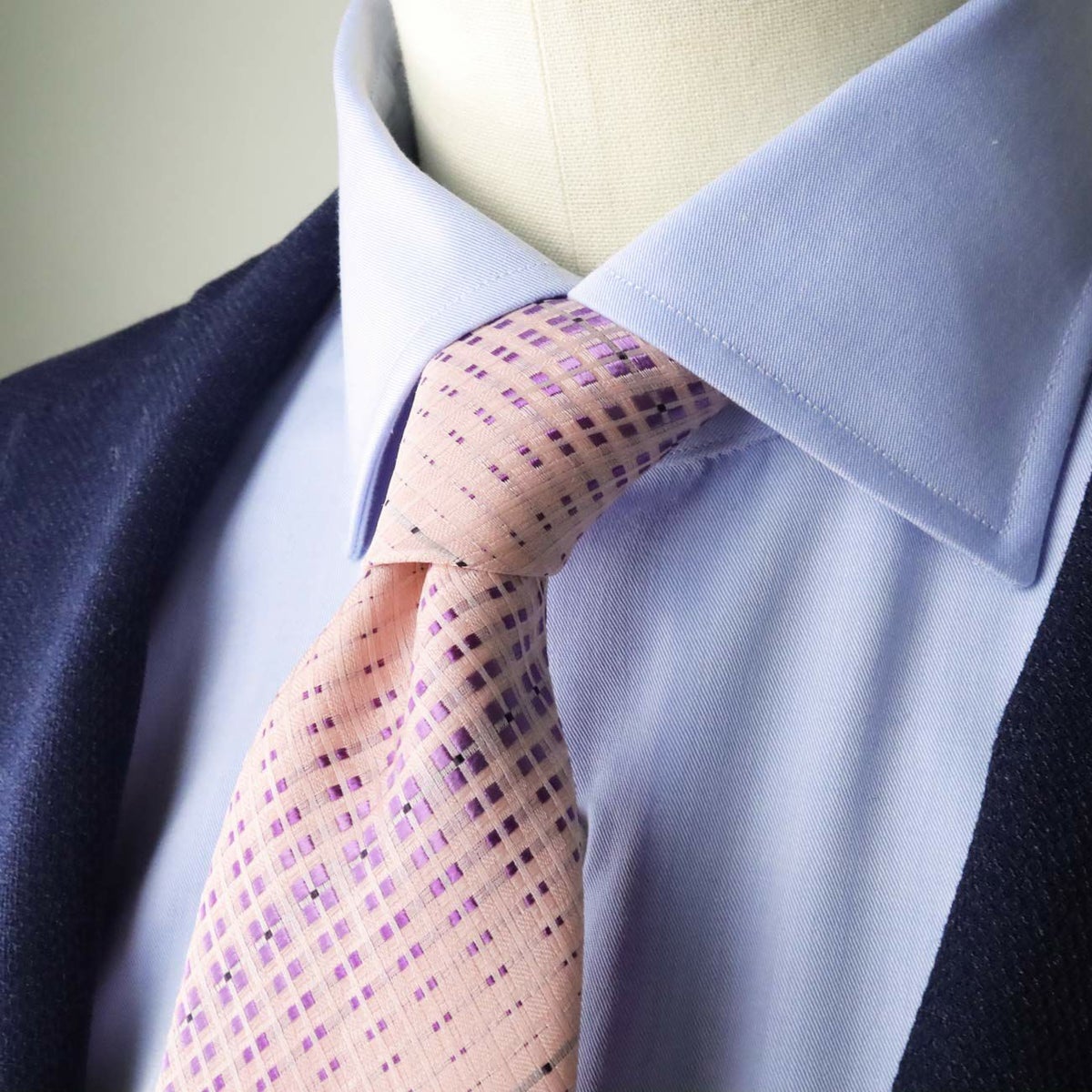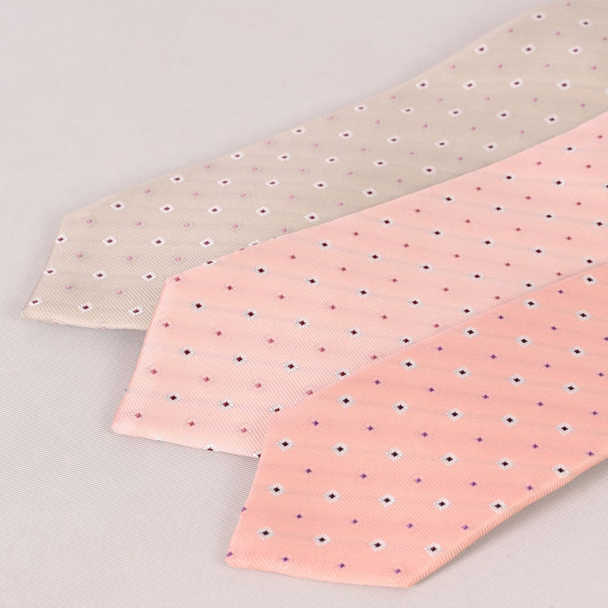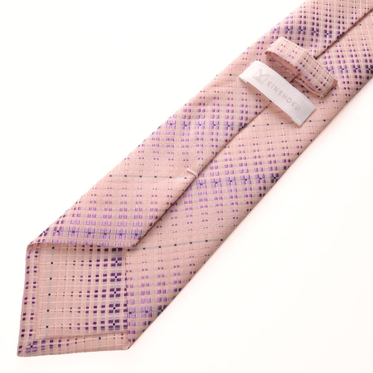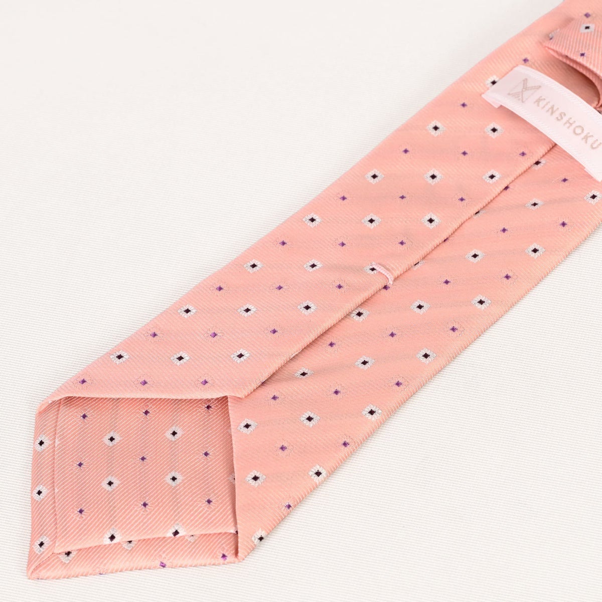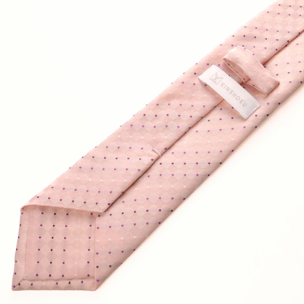 KINSHOKUネクタイ 桜染シャドー格子ドット・ピンク
