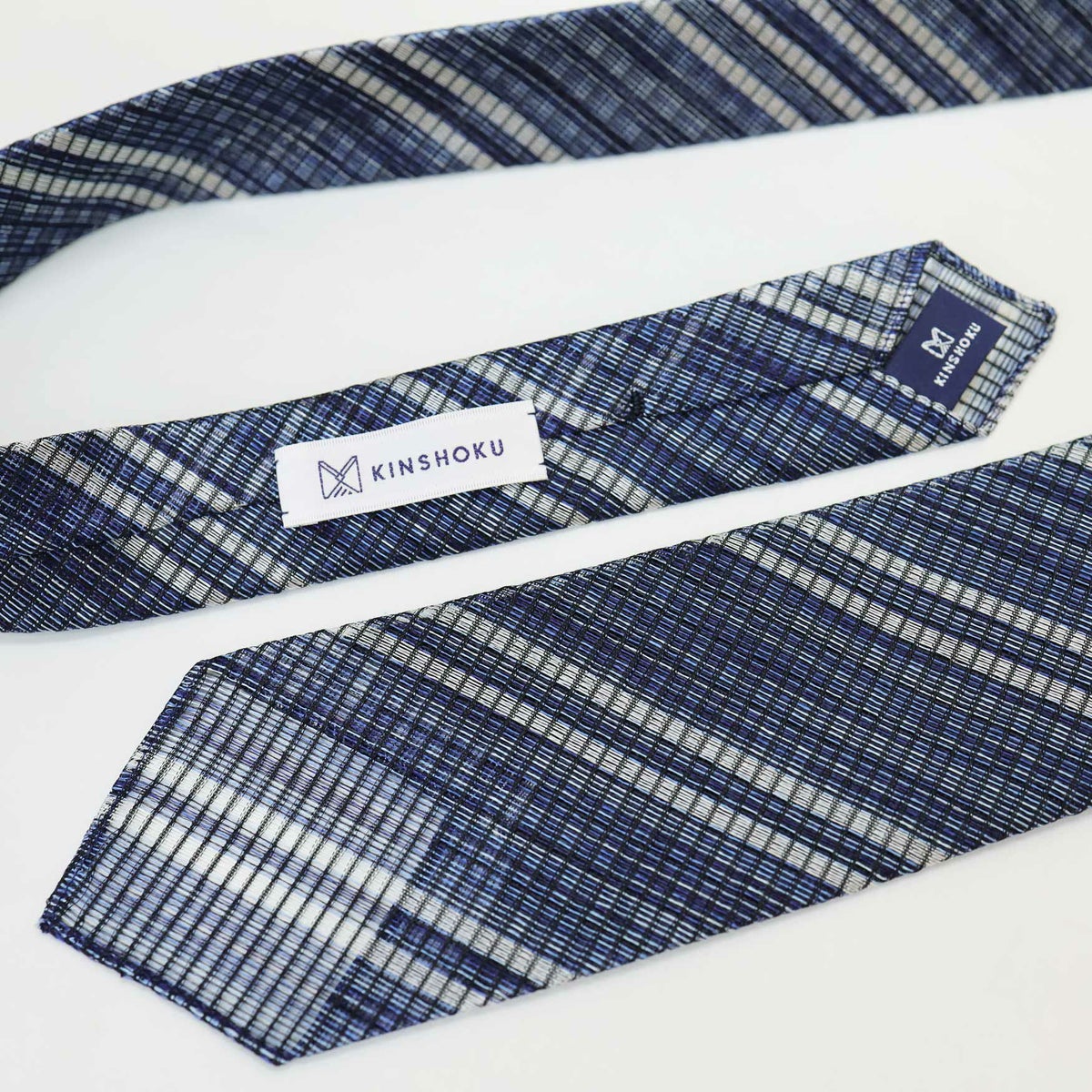 KINSHOKUネクタイ 紋紗織 Figured Gauze ストライプ・ブルー