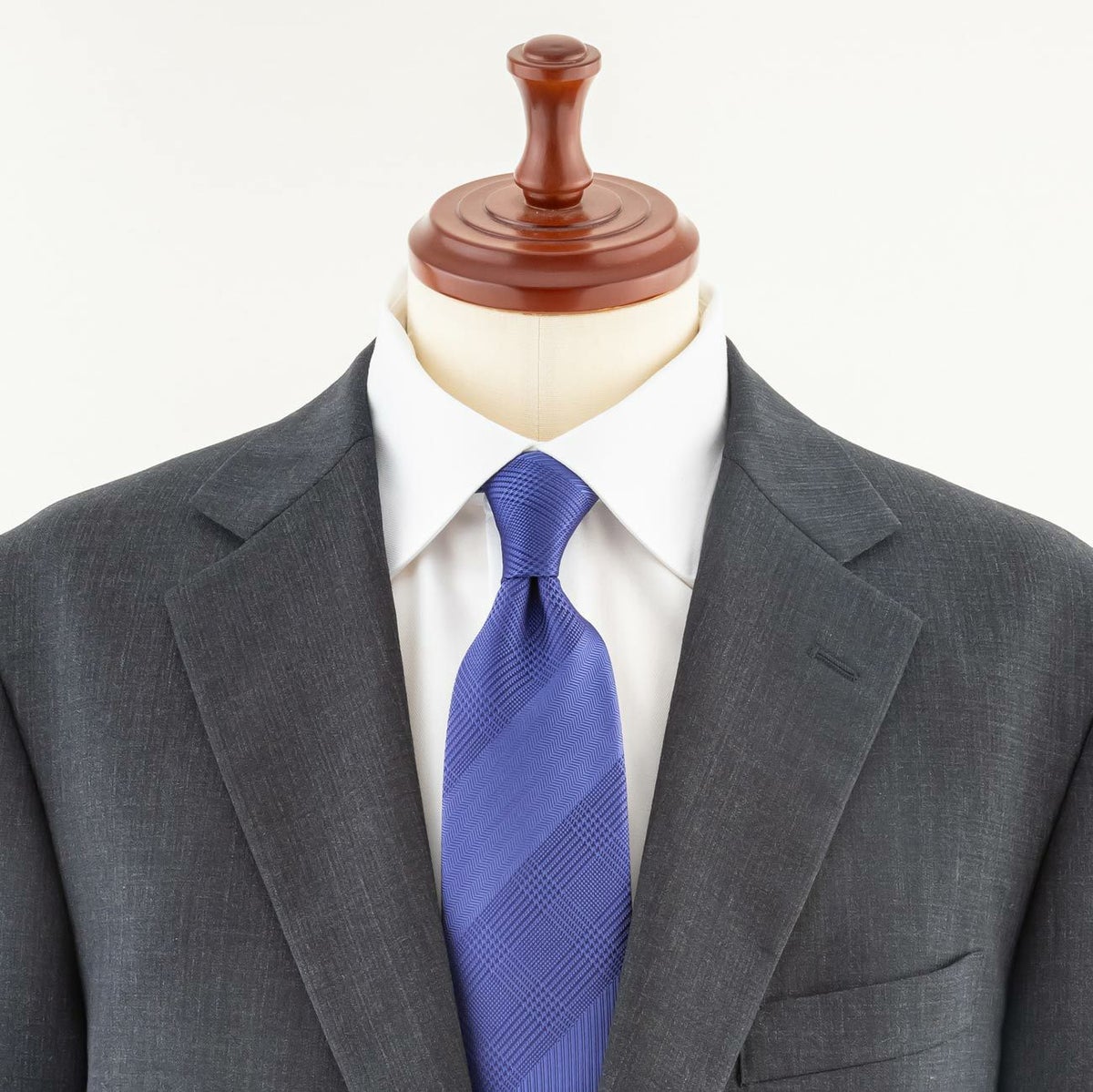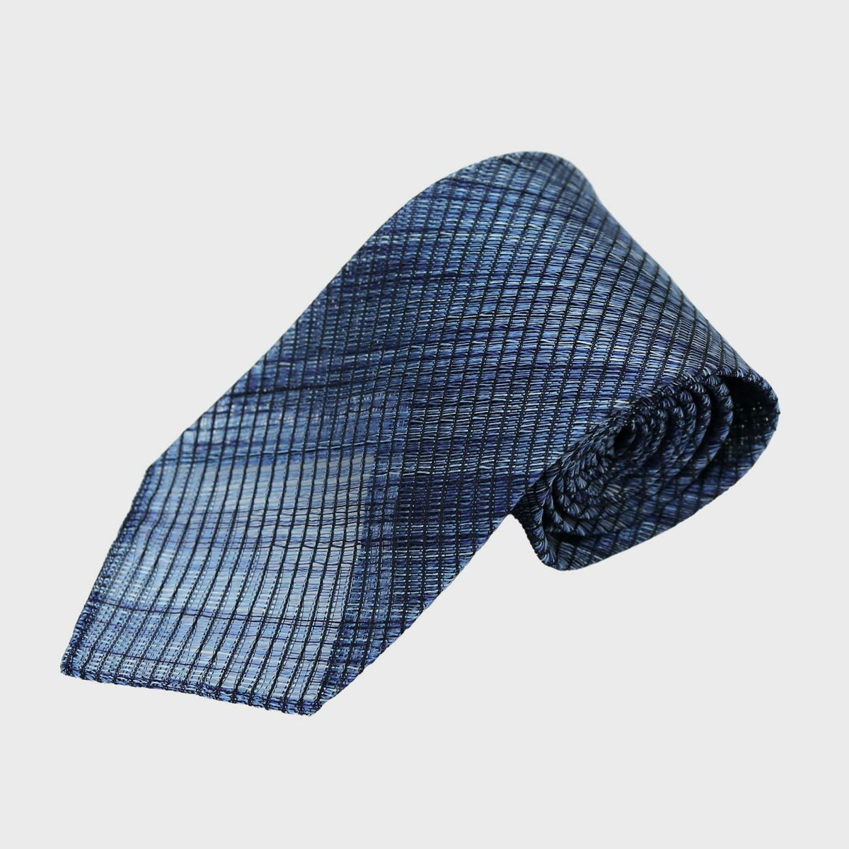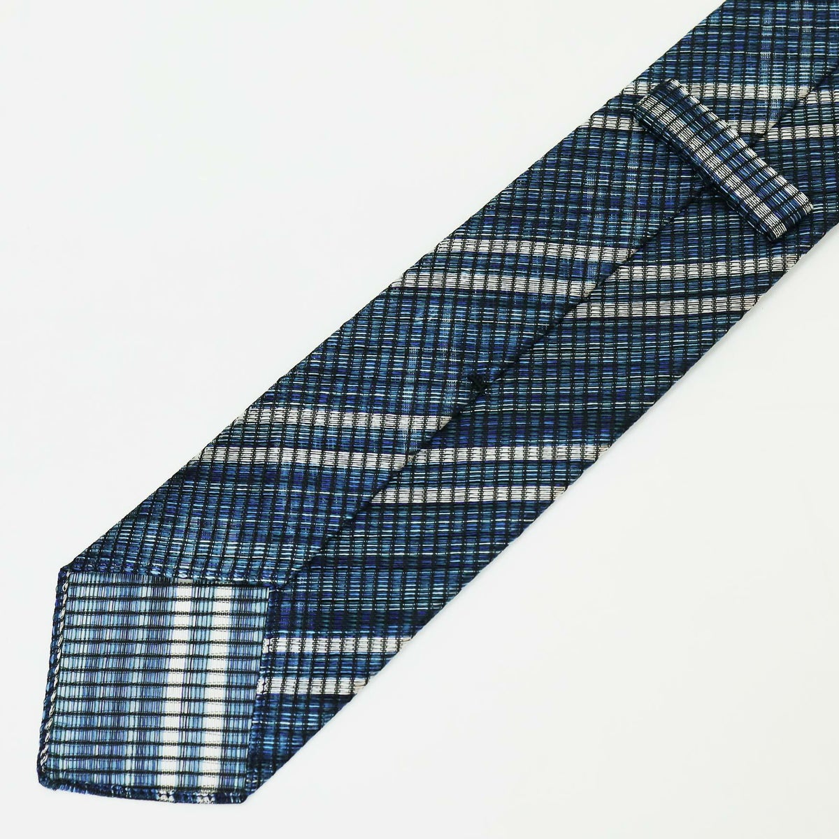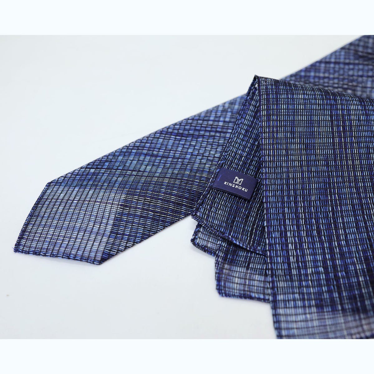 KINSHOKUネクタイ ソリッドグレンチェックストライプ・ブルー