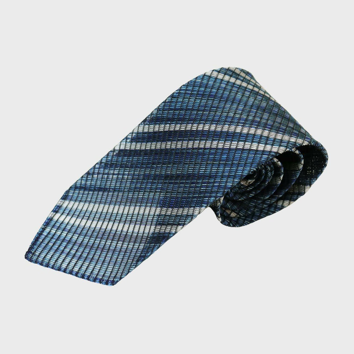 KINSHOKUネクタイ 紋紗織 Figured Gauze ストライプ・エメブルー