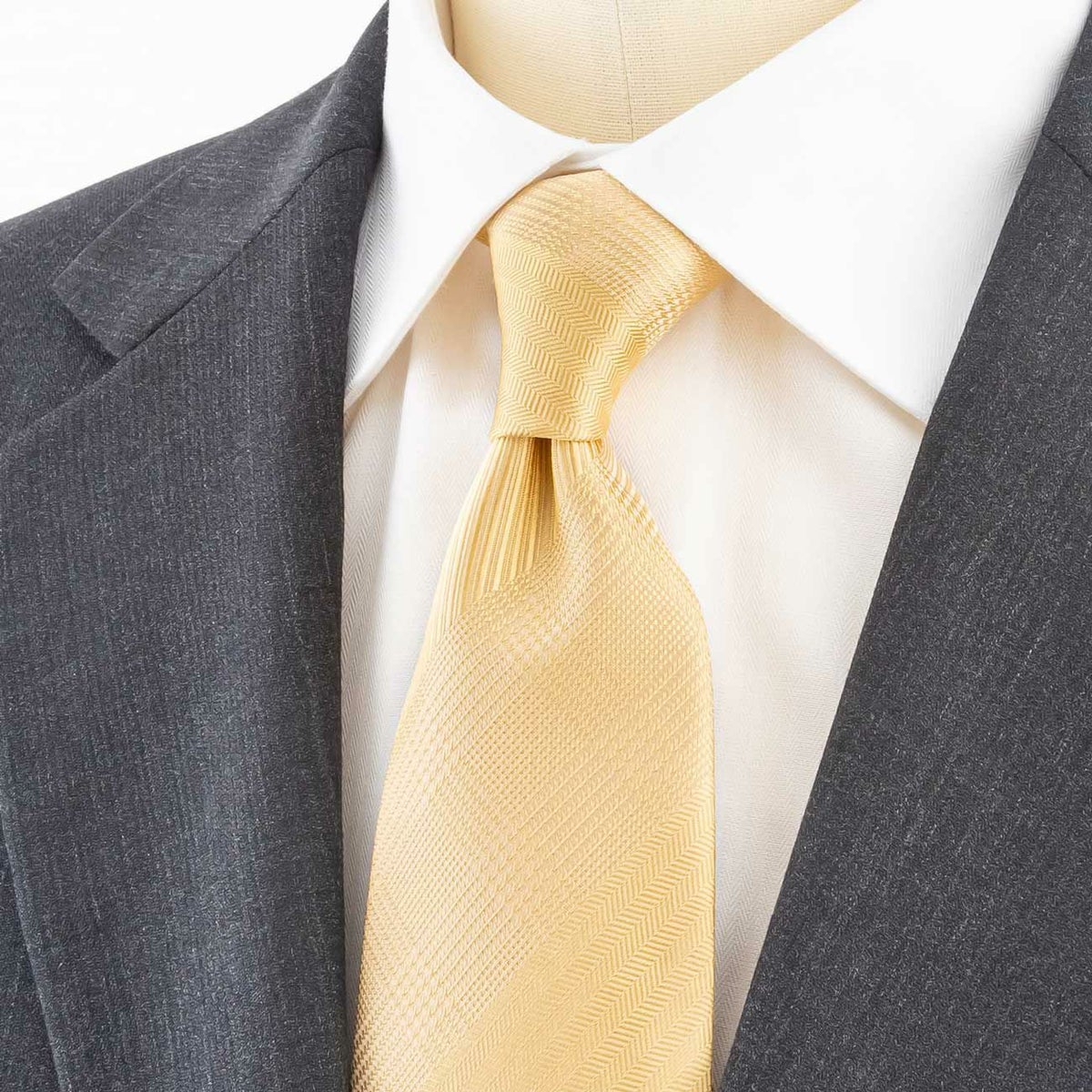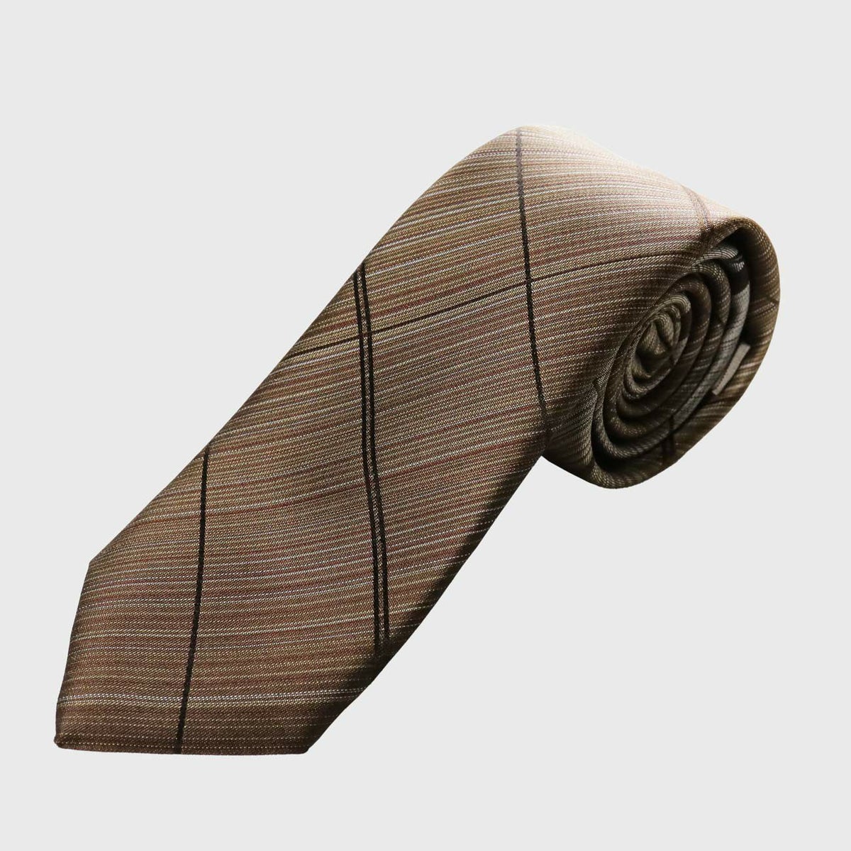 KINSHOKUネクタイ ソリッドグレンチェックストライプ・シャンパン