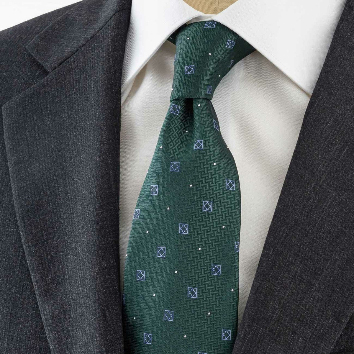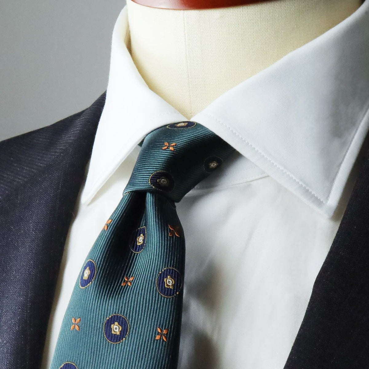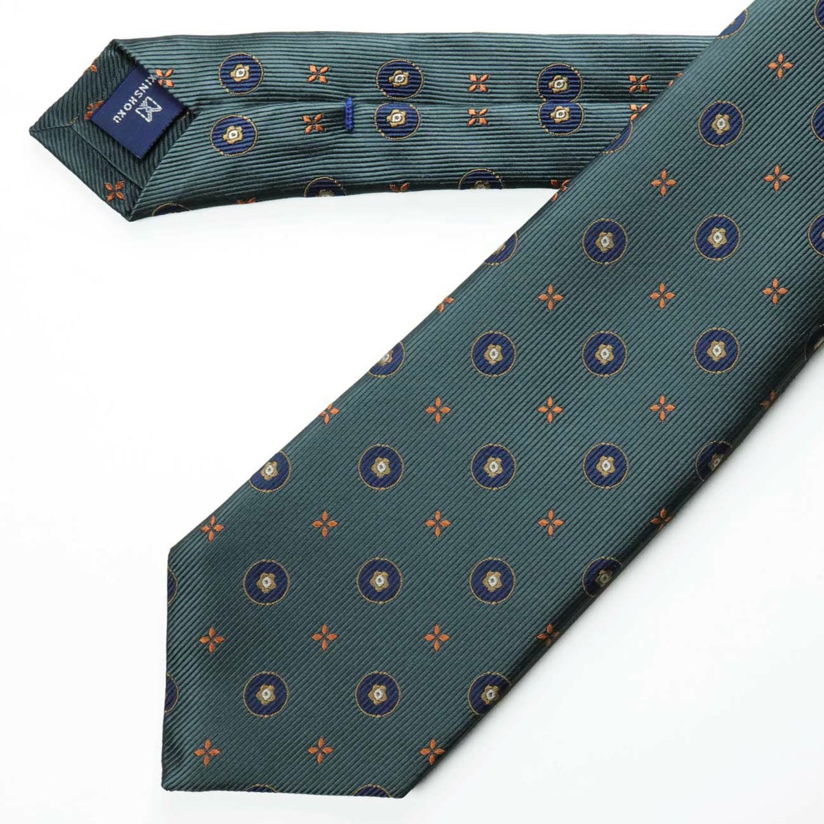 KINSHOKUネクタイ 純国産三崩し小紋・グリーン