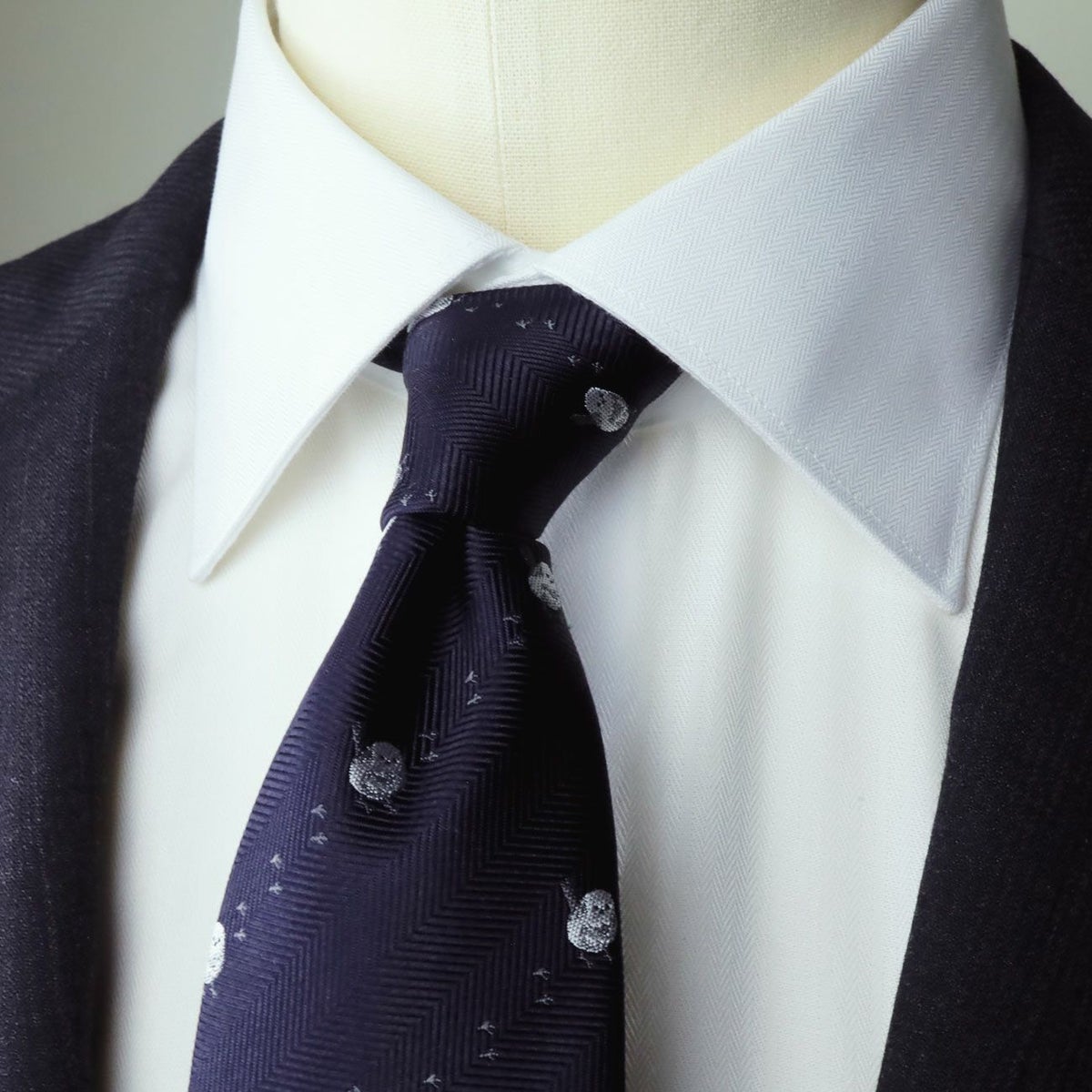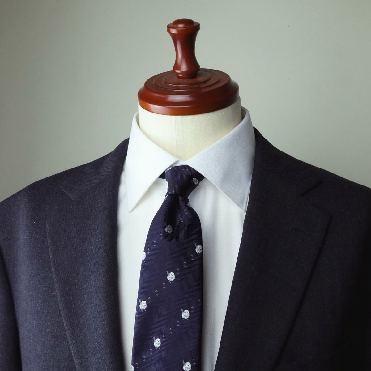 KINSHOKUネクタイ シマエナガモチーフワンポイント・ネイビー