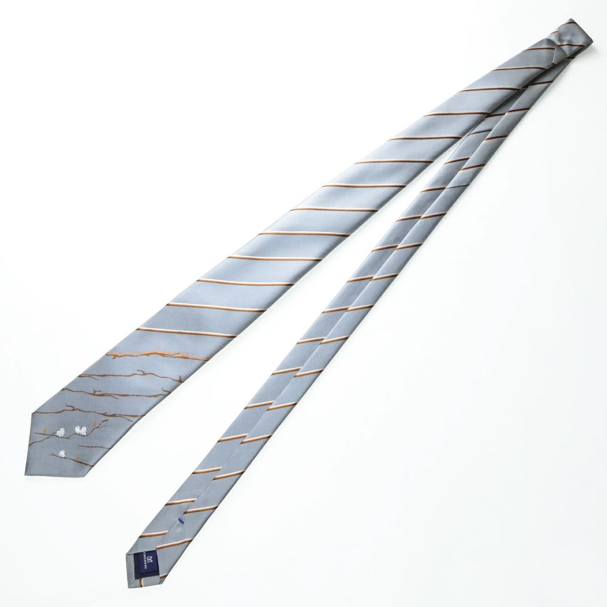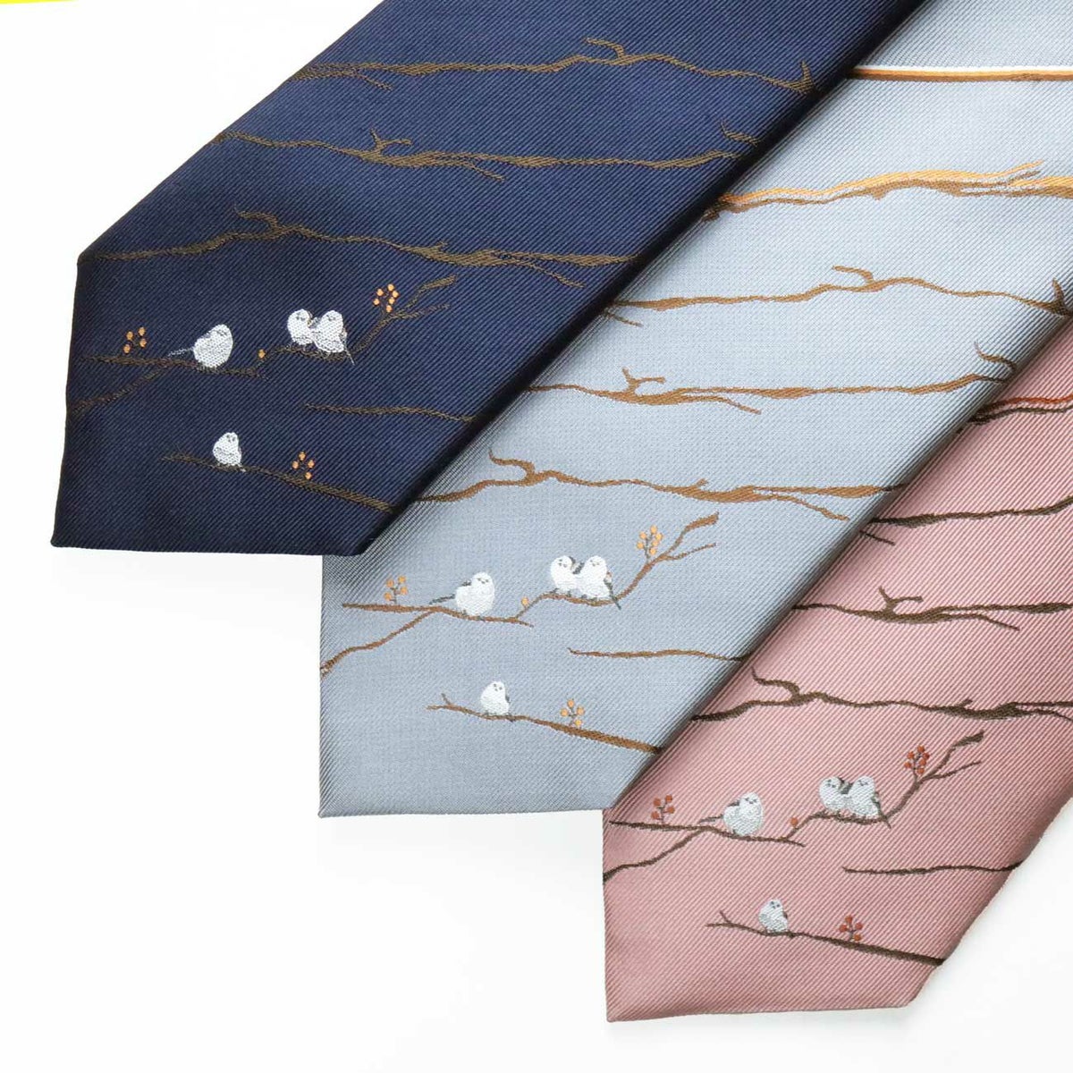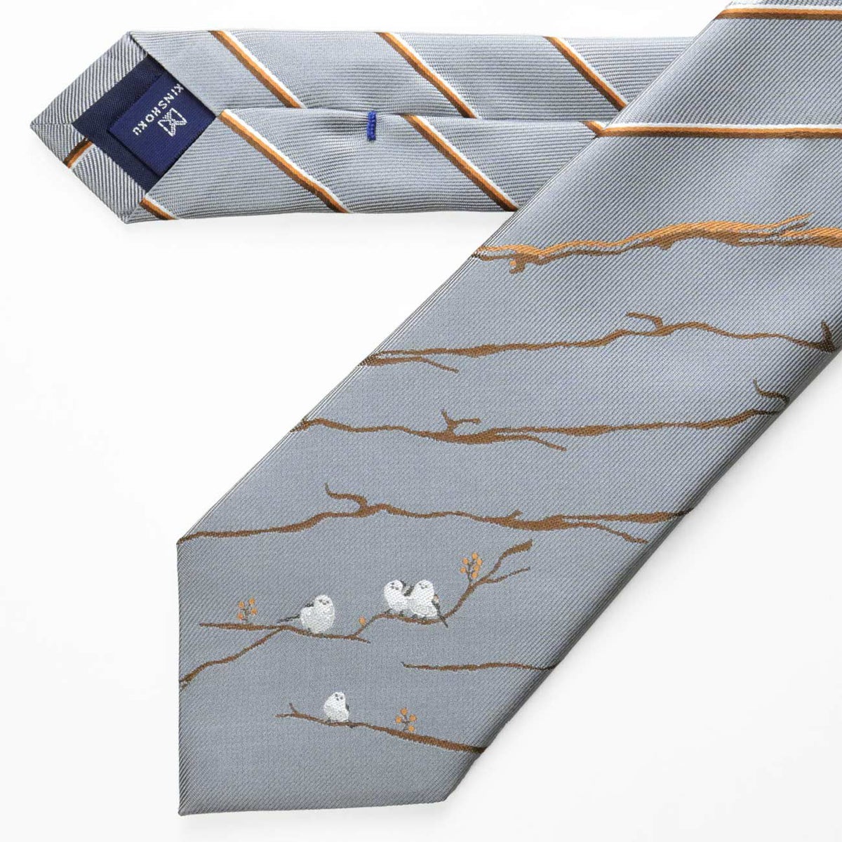 KINSHOKUネクタイ シマエナガモチーフワンポイント・シルバー