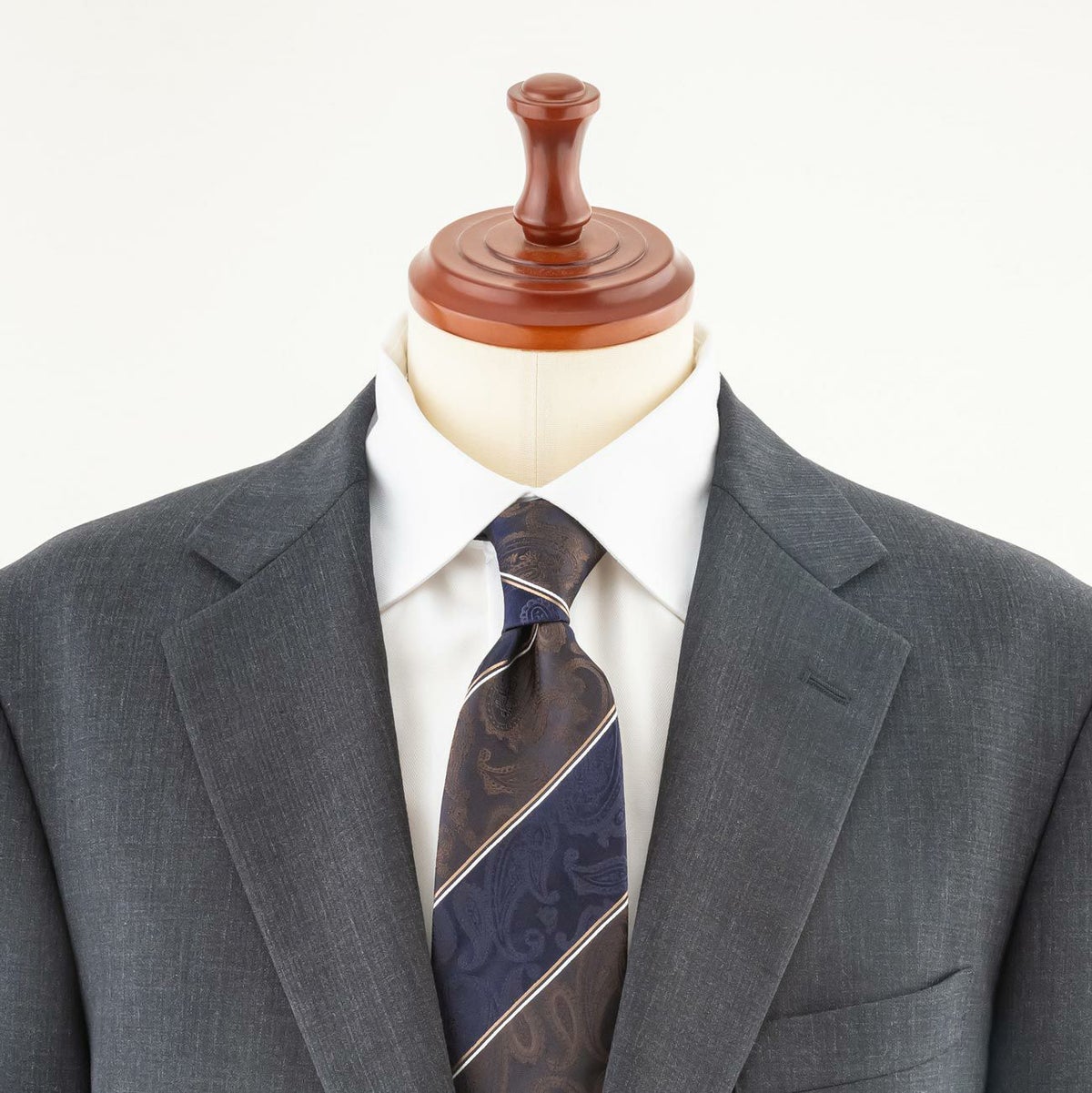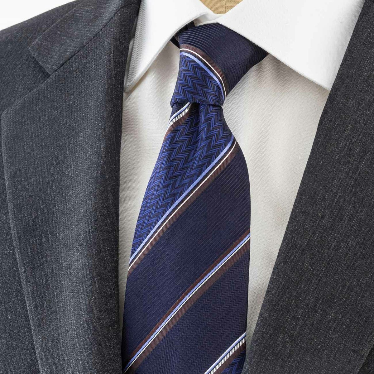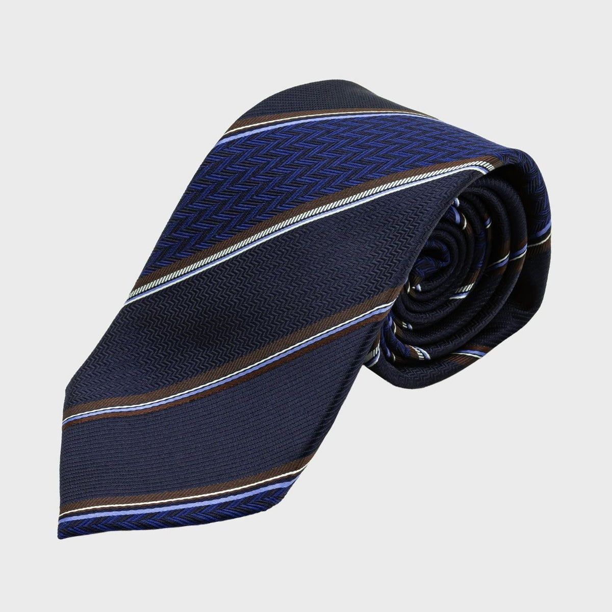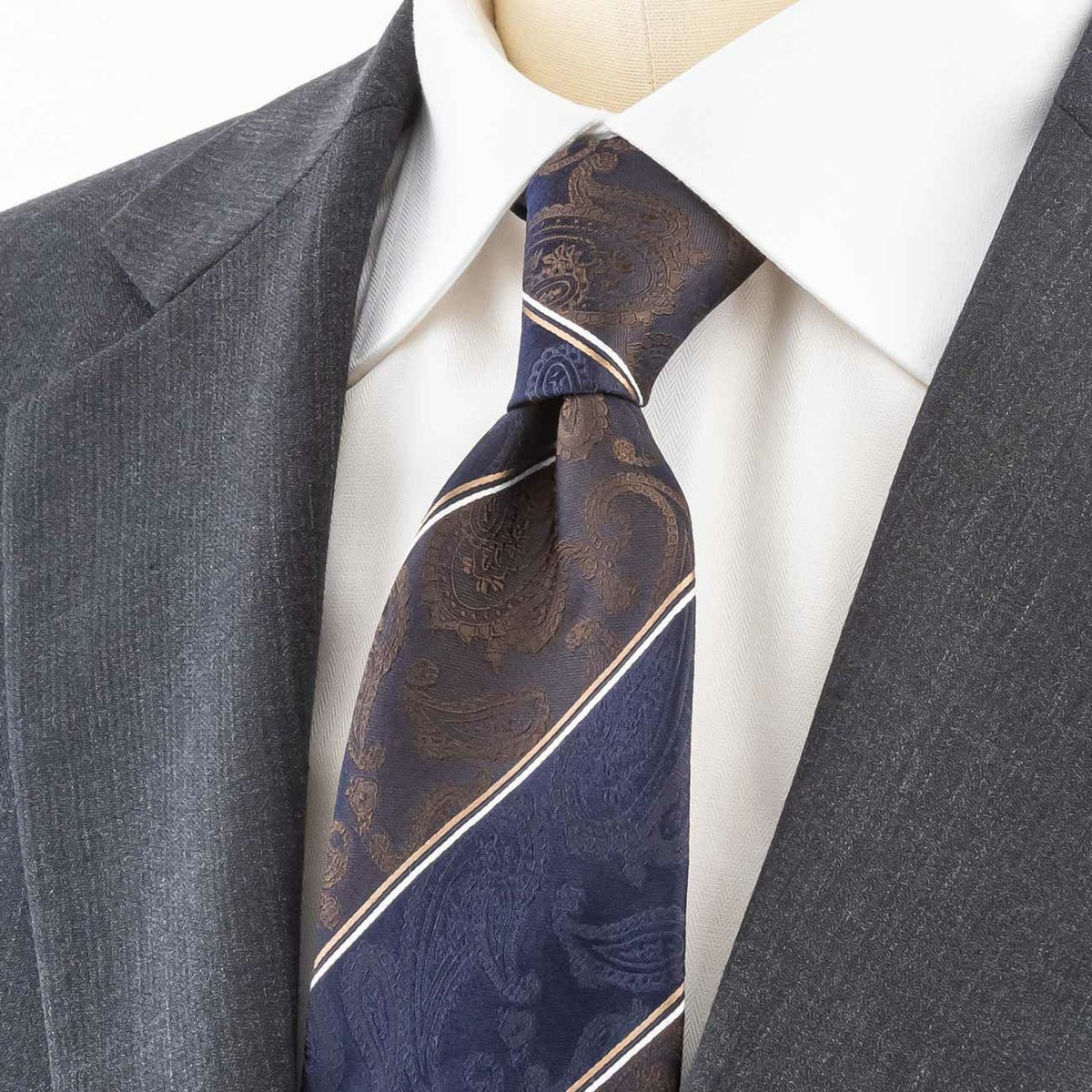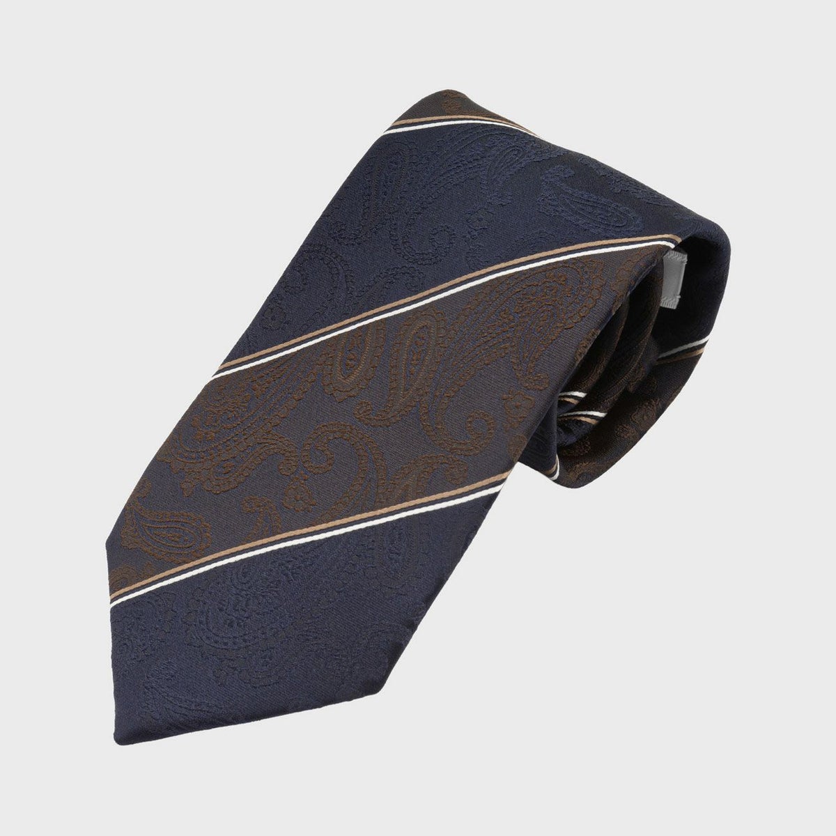 KINSHOKUネクタイ ペイズリーストライプ・ネイビー/ブラウン