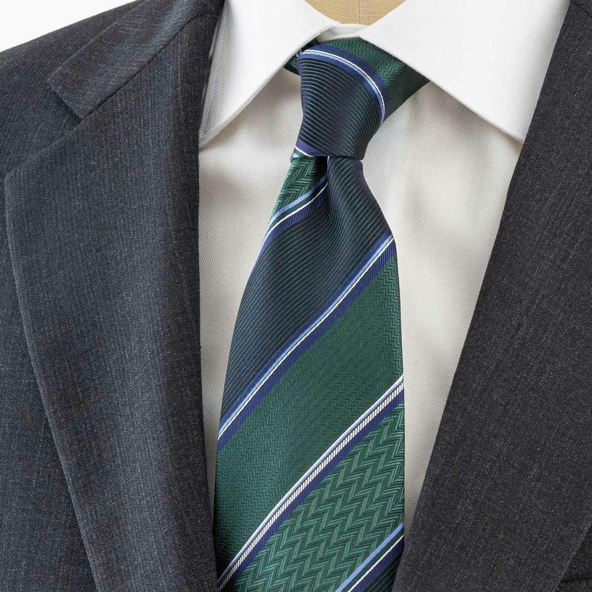 KINSHOKUネクタイ 純国産杉綾ストライプ・グリーン