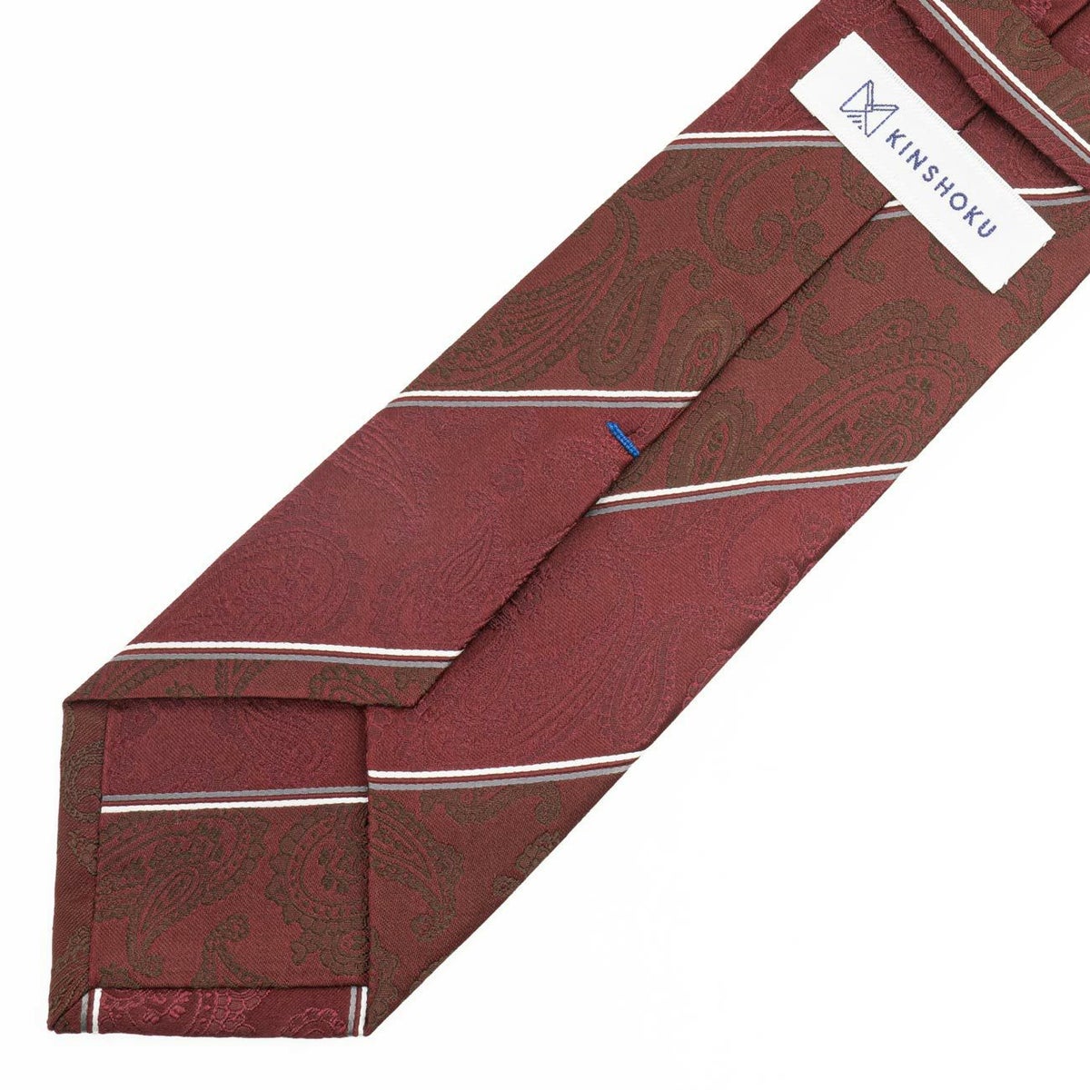 KINSHOKUネクタイ ペイズリーストライプ・ワイン