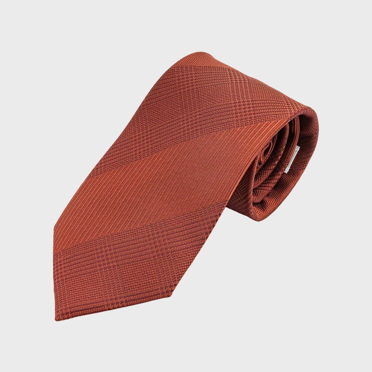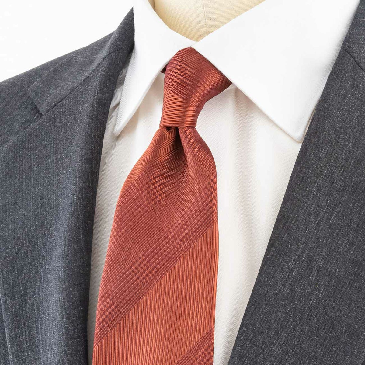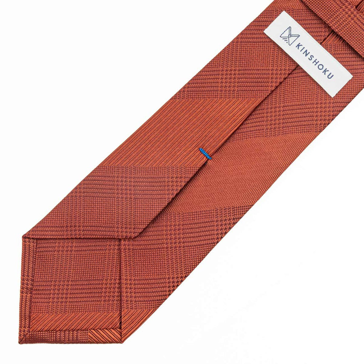KINSHOKUネクタイ ソリッドグレンチェックストライプ・オレンジ